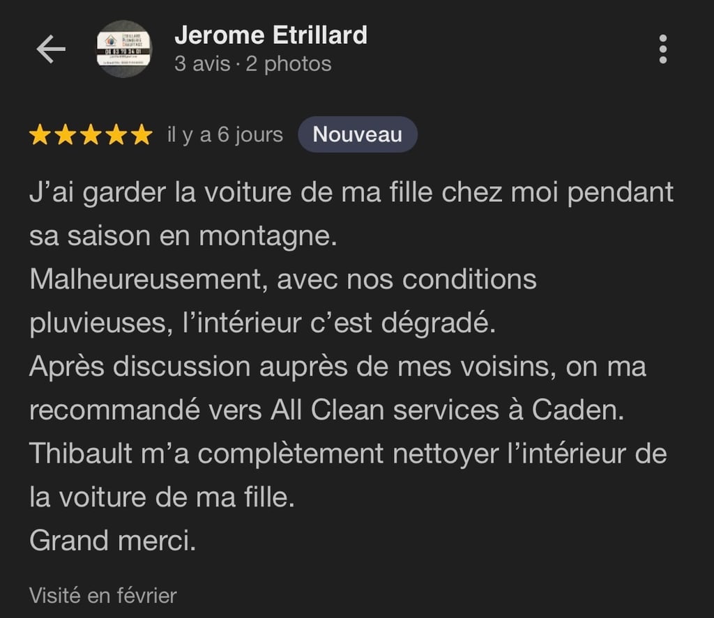 Ne perdez plus votre samedi après-midi dans une file d'attente en station de lavage. Que vous soyez à la maison ou au bureau, je me déplace avec tout le matériel nécessaire. Vous vaquez à vos occupations, je m'occupe de votre véhicule.
